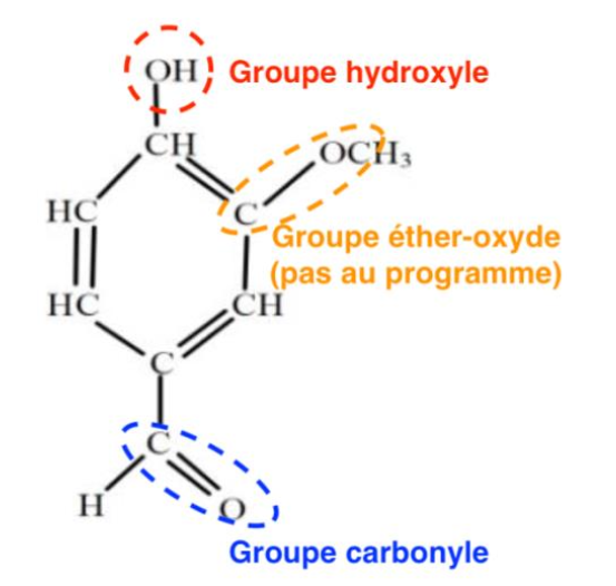 Les groupes caractéristiques de la molécule de vanilline sont :